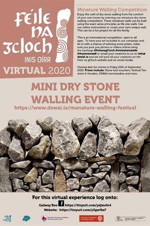 Enter the dry stone wall sketching competition (https://www.dswai.ie/draw-stone-walls) and the mini dry stone walling competition (https://www.dswai.ie/manature-walling-festival).