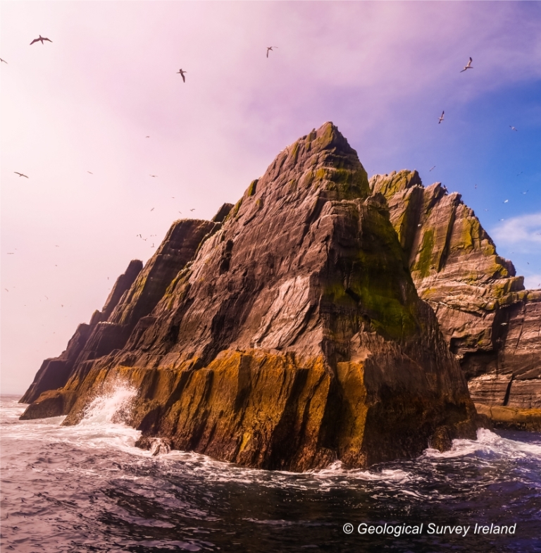 Little Skellig - Sceilig Bheag- Co Kerry. Red mudstone, siltstone, and sandstone of the Old Red Sandstone Group deposited in the Devonian Period (419 – 359 Ma).