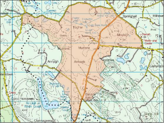| Mongan Bog comprises an extensive area of peatland extending in a lowlying hollow for approximately 2 kilometres, north to south, just east of Clonmacnoise.