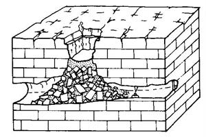 Bedrock collapse dolines are caused by collapse of bedrock into an underlying void. They are commonly due to the collapse of the roof of a cave and can be catastrophic. Although solution is a significant process driving the creation of these dolines, they are principally due to mechanical processes, although the collapse must be preceded by sufficient solution of the bedrock to form a void into which the material can fall (Williams, 2004a). They can also be caused by lowering of the water table removing buoyant support. They are usually characterised by a high depth to width ratio and vertical bedrock sides, although in time they may degrade and infill. These are less common in Ireland.