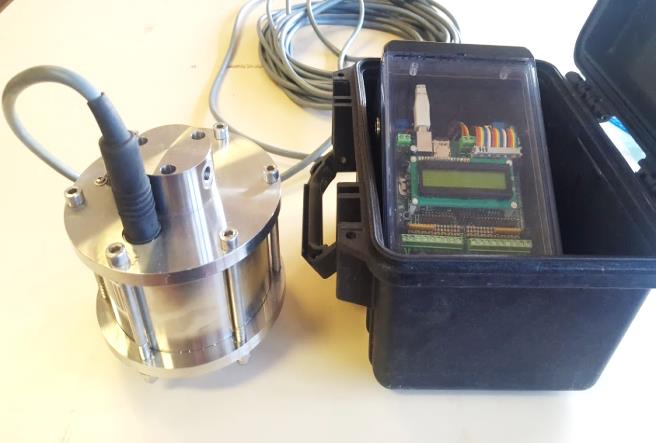 A GGUN-FL30 field fluorometer and data logger in double waterproof housing.